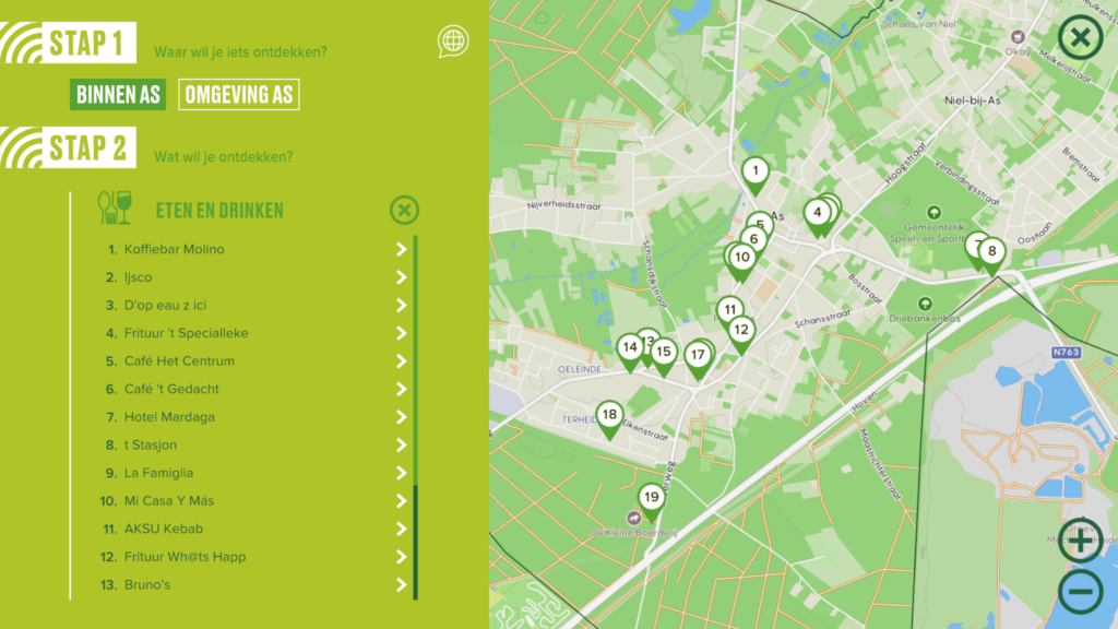 • Interactieve kaart die aangeeft welke activiteiten je waar kan doen. Selecteer volgens activiteit of doelgroep en zie welke mogelijkheden je waar kan doen.